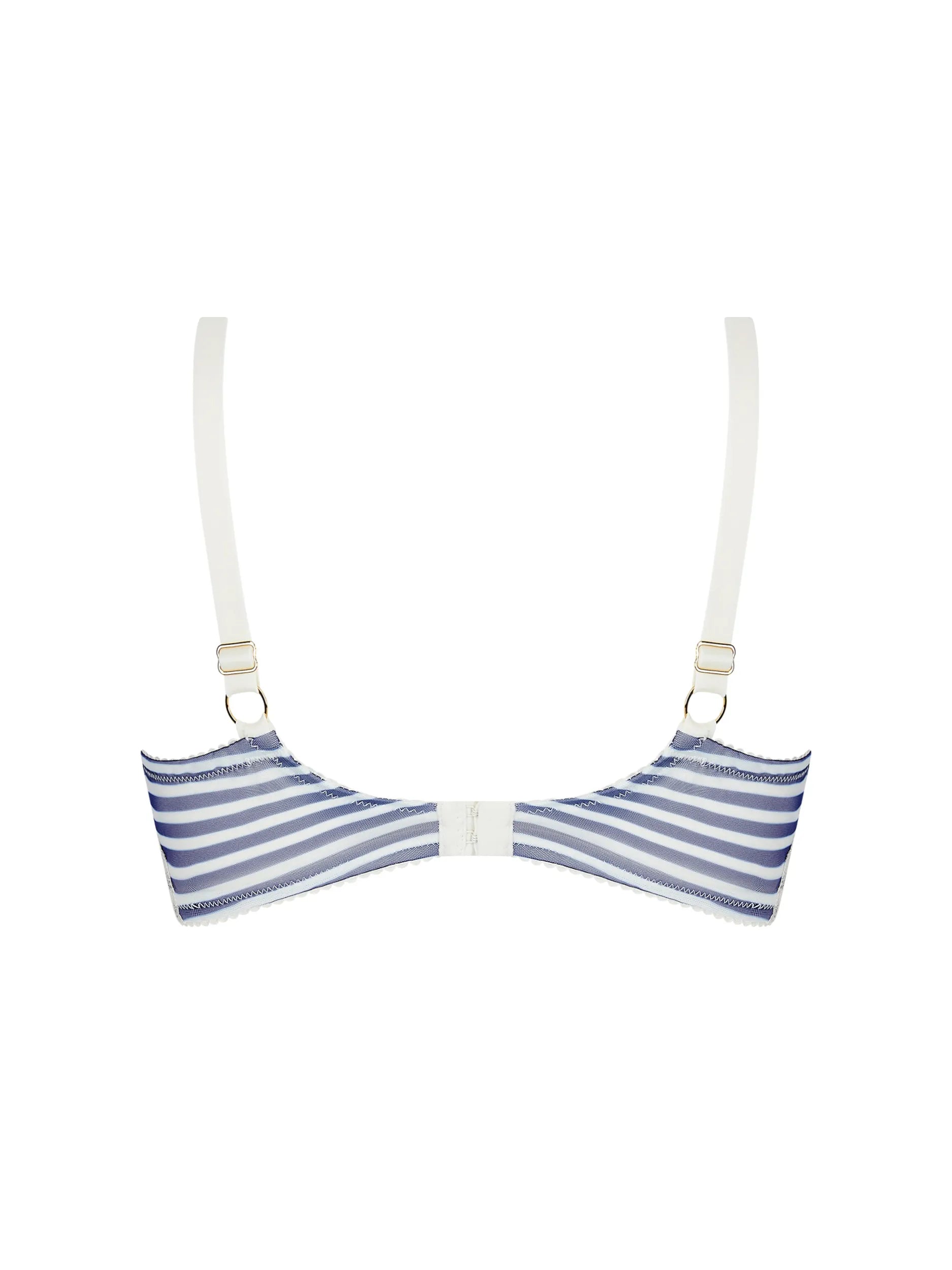 Exuding the essence of marine beauty, Cap Au Levant by Lise Charmel puts a fresh spin on a timeless wardrobe essential, blending the sophistication of sailor stripes with the ethereal touch of delicate floral embroidery and the allure of exquisite lace.