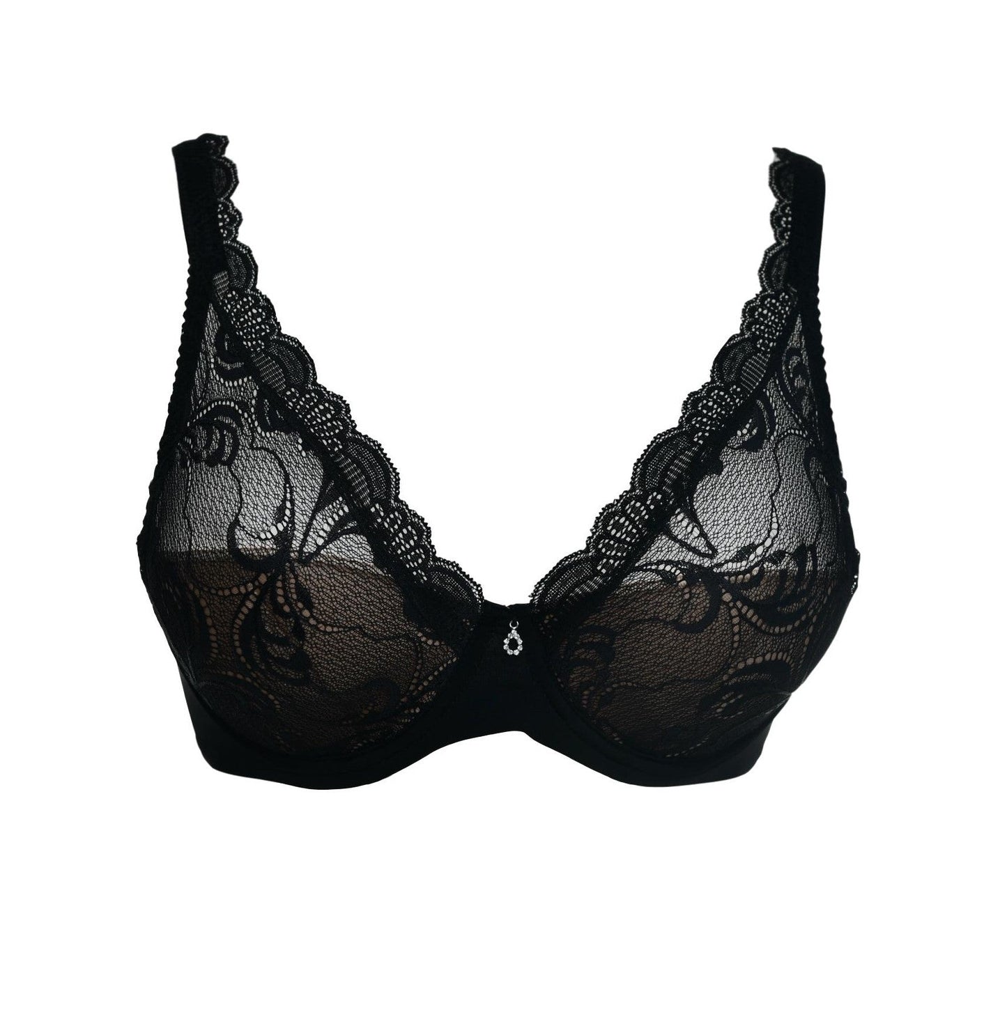 The Savoir Faire line from Leilieve features this lace bra for an ideal fit and comfort from its attentive construction. The cups have been designed with light padding (about 2mm) attached only to the band and overlaid with Italian flat lace, detaching the cups for unrestricted movement while minimizing the fabric's transparency.