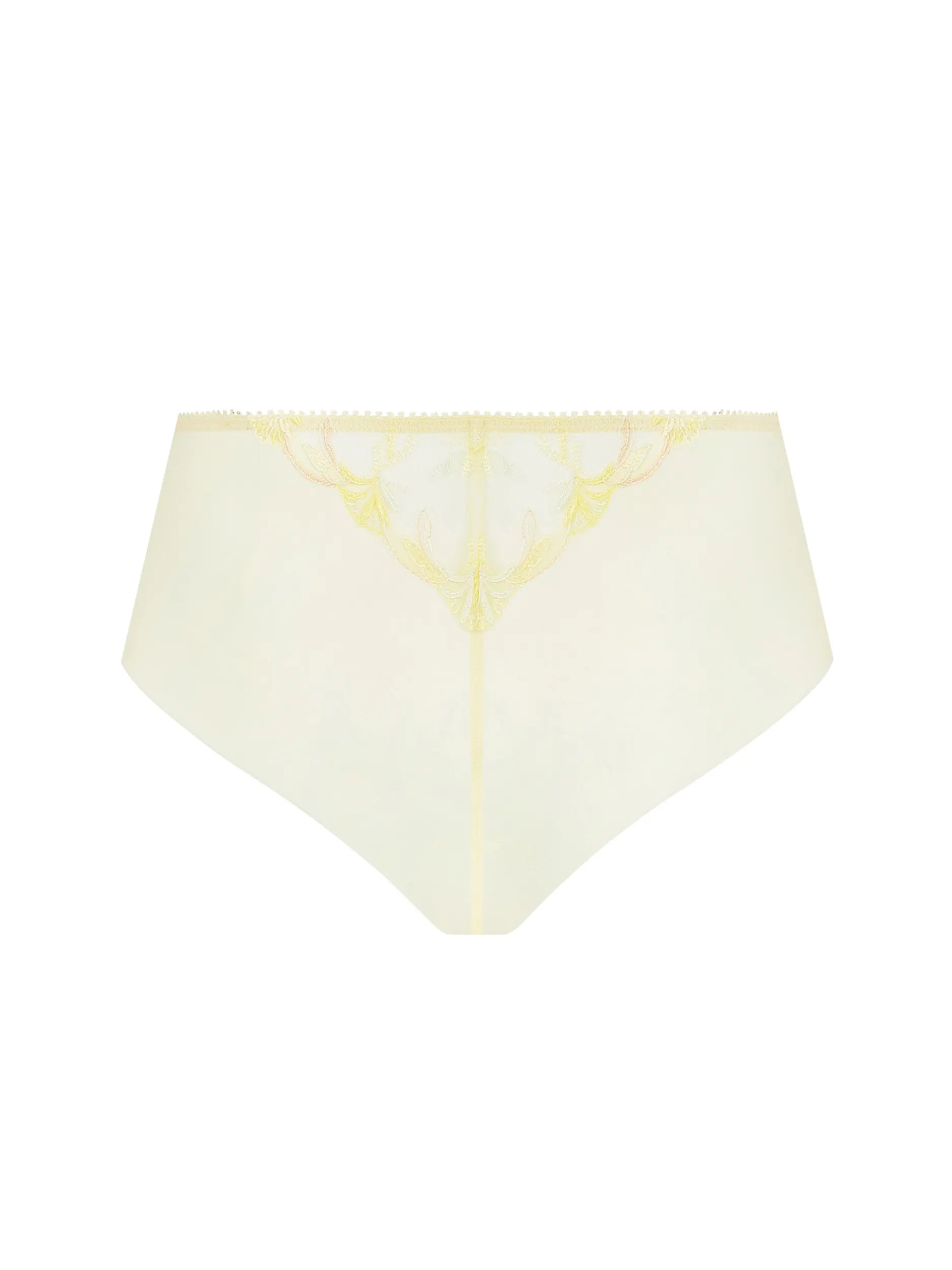 This elegant shorty from Lise Charmel’s Frisson D’Or line exudes refinement and charm. Crafted from delicate lace, it features intricate multi-thread embroidery on the front and sheer ultra-fine tulle at the back, offering a lavishly detailed look. The scalloped trims, low-rise fit, and shorty-style back gracefully accentuate your curves, delivering a stunning and flattering silhouette.