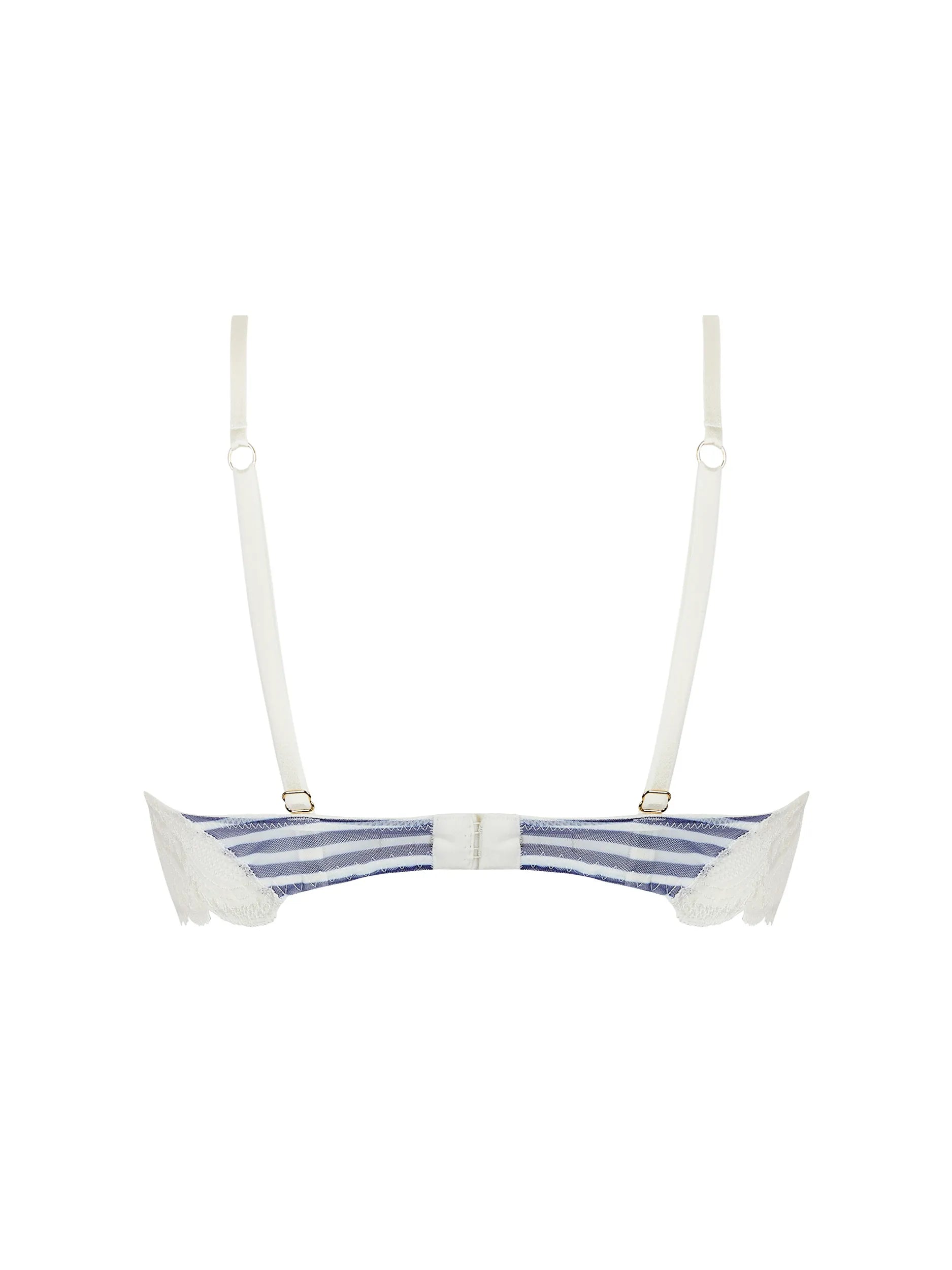 Exuding the essence of marine beauty, Cap Au Levant by Lise Charmel puts a fresh spin on a timeless wardrobe essential, blending the sophistication of sailor stripes with the ethereal touch of delicate floral embroidery and the allure of exquisite lace.