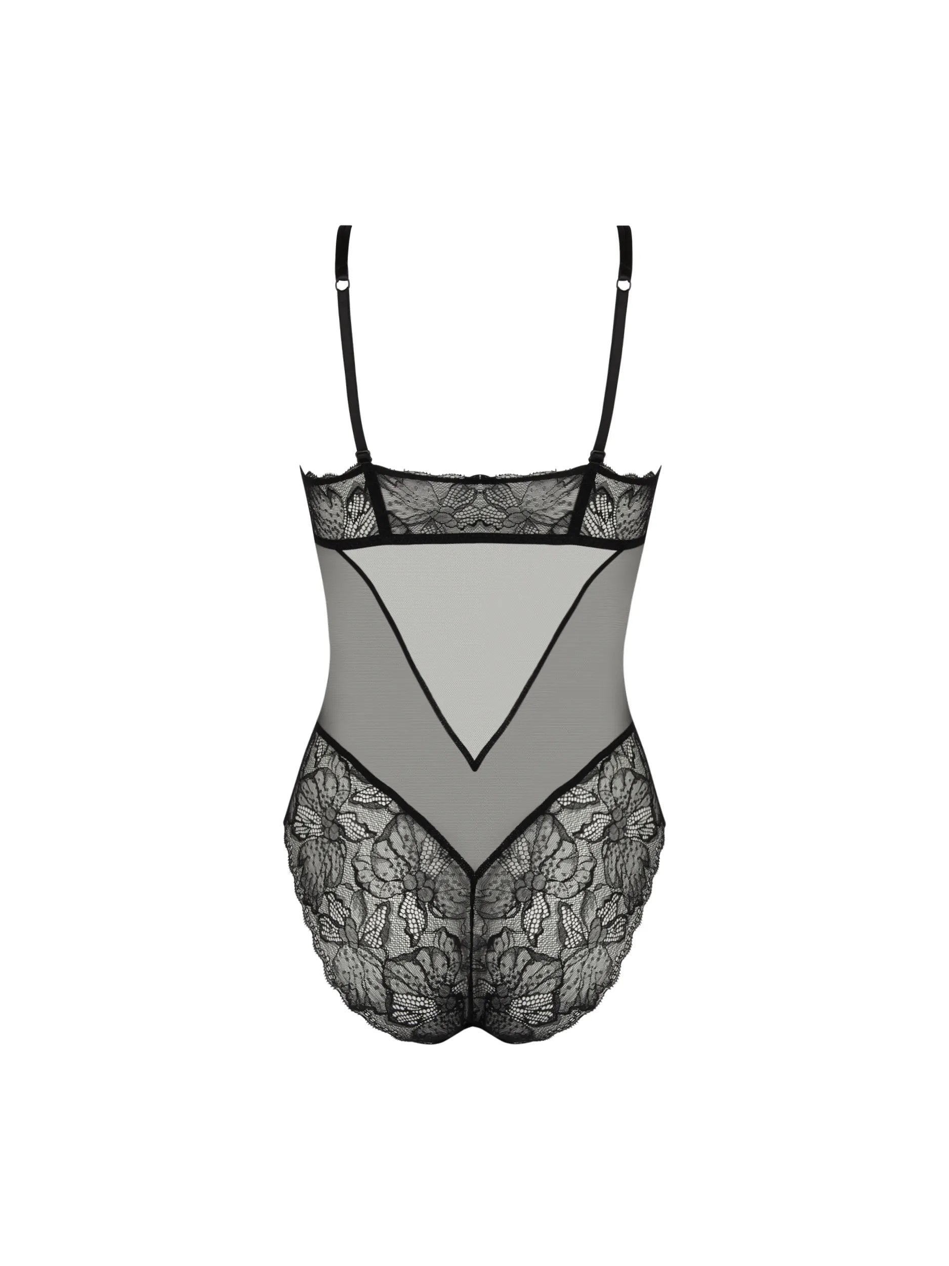 The Floraison Passion collection by Lise Charmel draws inspiration from a romantic journey where vibrant nature and vivid hues come together. This line enhances your figure with exquisite embroidery featuring delicate floral motifs, offering an elegant and sophisticated touch. This bodysuit features intricate multi-thread embroidery, an exclusive design, delicate tulle, and Leavers lace, creating a refined and elegant lingerie piece.