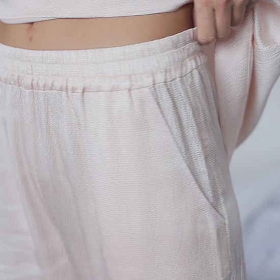 These Bubble Silk Relaxed Pants represent the pinnacle of comfortable sophistication. Constructed from luxurious textured bubble silk, they deliver a breathable, lightweight experience that feels indulgent against your skin. The generously cut wide-leg design moves freely with your body, while the forgiving elastic waistband adapts to your comfort needs throughout the day.