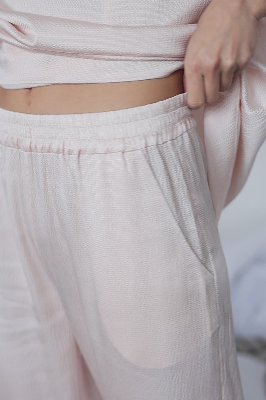 Beautifully draping fabric creates an effortlessly polished appearance, whether you're relaxing at home, traveling, or embracing casual elegance. The refined aesthetic elevates any wardrobe, and pairing them with a coordinating silk camisole or tee creates a cohesive, upscale look that speaks to your discerning taste.